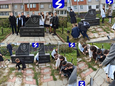 В рамках реализации проекта «Путь к Победе: города-герои» обучающиеся 7б класса организовали уборку травы, мусора на плитах к стеле «Победишь себя, будешь непобедим», посвященной ветеранам внутрен...