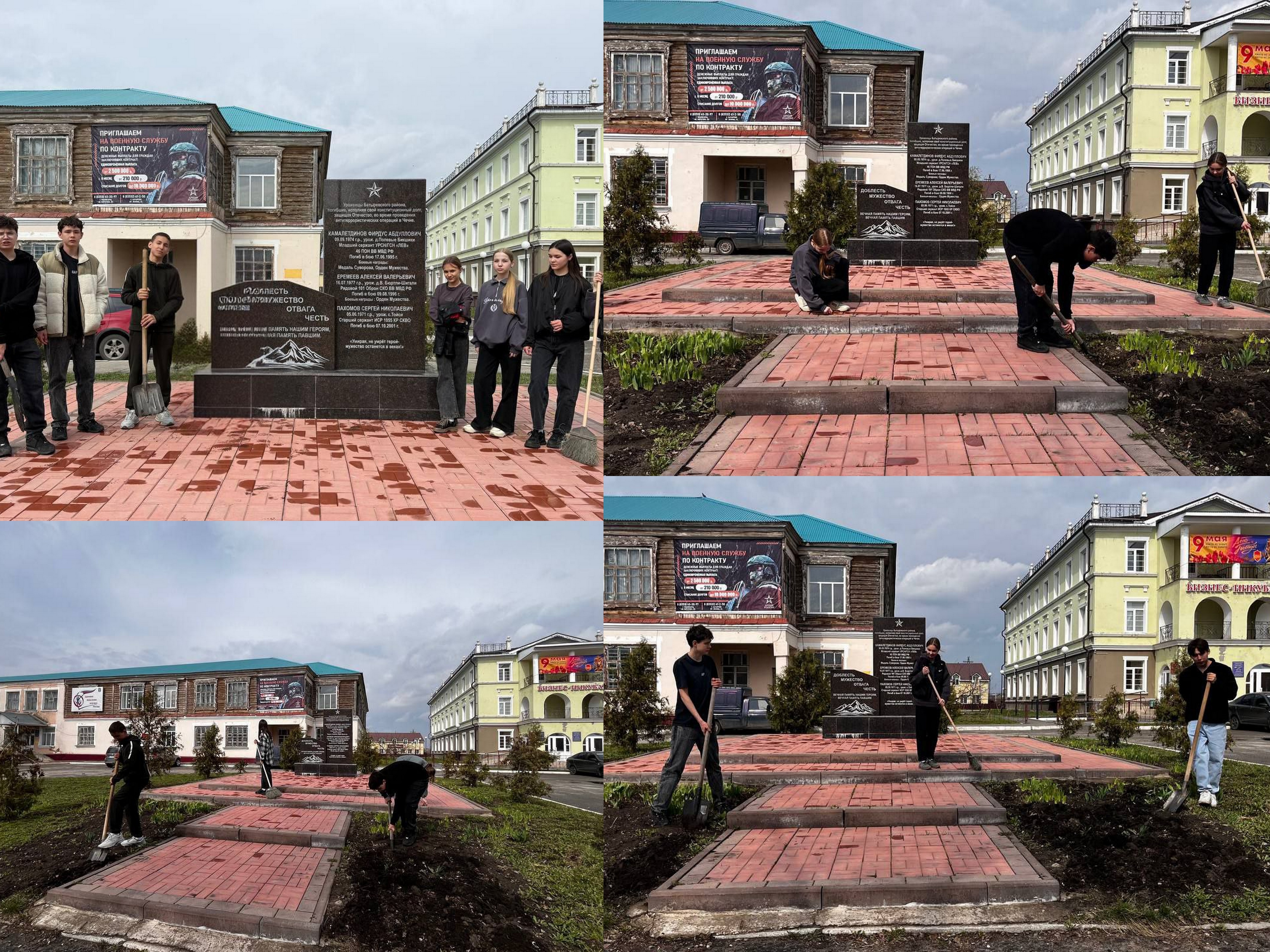 Учащиеся 8а класса МАОУ «Батыревская СОШ №1» вместе с классным руководителем присоединились к данной акции. Привели в порядок прилегающую территорию памятника погибшим землякам в локальных конфликтах. Дружно разобрав рабочий инвентарь: мётлы и грабли - провели работу по очистке территории памятника воинам, сгребали прошлогоднюю траву и листву, подмели брусчатку.