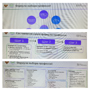 Цель занятия: познакомить учащихся с формулой выбора профессии. На занятии ребята познакомились со специалистами востребованных профессий и оценили их работу по разным параметрам формулы выбора профессии, а затем выполнили реальные задания от экспертов. Это характерные задачи, с которыми специалисты сталкиваются в реальной жизни. Основная цель выполнения заданий — дать возможность попробовать свои силы в профессии, погрузиться в процесс и оценить, насколько это может быть интересно для обучающегося.