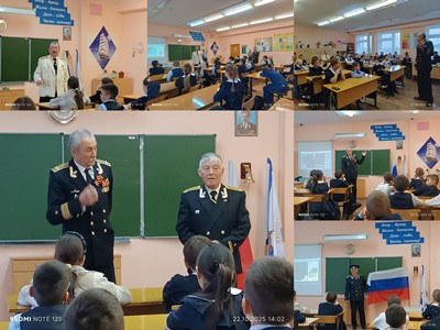 В начале мероприятия куратор кадетского движения нашей школы Паймуллин В.И. рассказал ребятам об истории создания Российского флота, о развитии Российского военно-морского флота и его победах на мировой арене. Владимир Ильич также рассказал про капитана I ранга Сапожникова Игоря Анатольевича. Сапожников И.А. – выпускник нашей школы, служил на подводных лодках, работал в Генеральном штабе военно-морского флота Российской Федерации, занимался разработкой и внедрением вооружения на флот. Учащиеся с большим интересом слушали о подвигах нашего соотечественника.