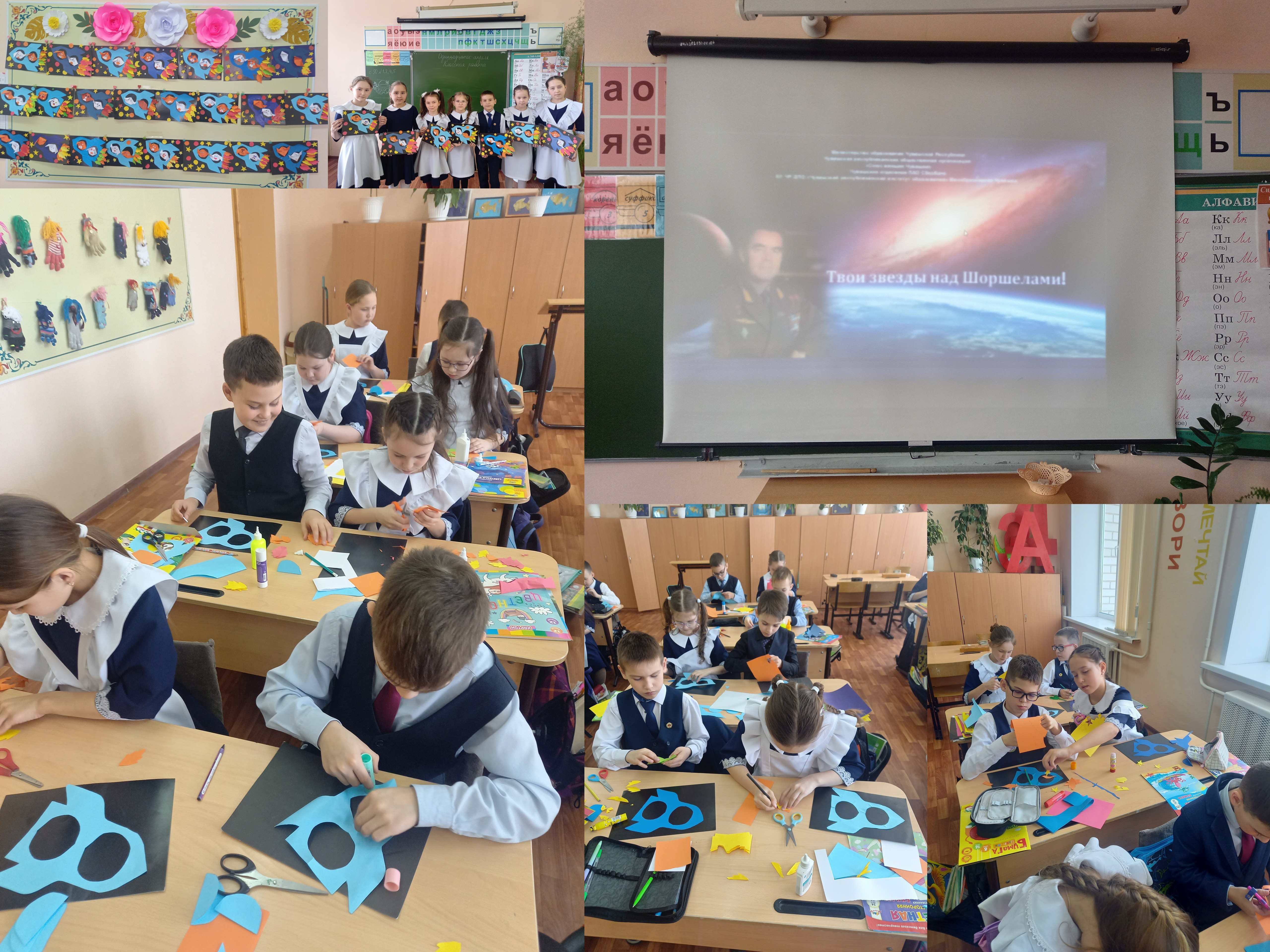 Полёты в космос – это результат огромного труда большого коллектива учёных, рабочих, космонавтов, которые обеспечили первенство нашей Родины в освоении космоса. На уроке учащиеся познакомились с процессом подготовки будущих космонавтов, включая требования к кандидатам и этапы отбора, где можно получить соответствующее образование. В конце урока ребята из цветной бумаги создали аппликацию ракеты и наших пассажиров «Белки» и «Стрелки».