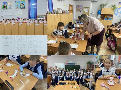 Чувашская вышивка - это настоящее волшебство! Наши прабабушки вышивали, будто сочиняли песню. Каждый шов, орнамент имеет свое значение. Ребята познакомились с главными цветами национальной вышивки и как эти цвета получали в старину. Только бережное отношение к наследию сохранить историческую память поколений, не утратить связи с корнями своего народа, воспитать национальную гордость. Классный руководитель рассказала о разновидностях чувашских шейных украшений из бисера и монет. А также о головной повязке масмак. Вниманию обучающихся были представлены некоторые образцы вышивки, изделия с национальным орнаментом. И на мастер-классе ребята изготовили бумажную куклу в чувашском национальном костюме. Кукла – это и незаменимый спутник детских игр, и предмет искусства, декора. У чувашского народа существовали куклы из дерева, куклы из мочалки, куклы закрутки, куклы-обереги.