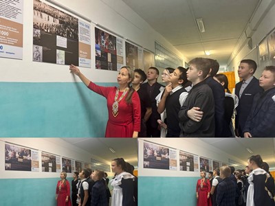 Учащиеся 8-х классов приняли участие в открытии выставки. Первую экскурсию по выставке провела учитель изобразительного искусства С.О. Попова. Она подробно познакомила учащихся с материалом, представленным на выставке, ознакомив с важными событиями, которые происходили в течение ХХ века в Чувашии.